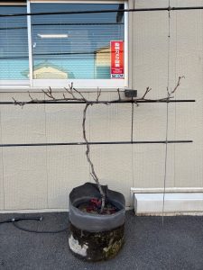 コルドンは主枝を水平に固定し、そこから出る枝の2~3芽を残して切ります。